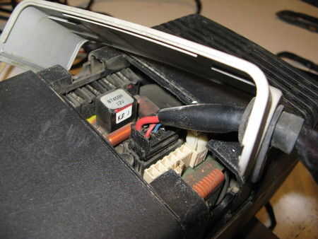 Hay un truco para bajar la tapa. Levante a ambos lados de la cubierta lo suficiente como para que el pequeño borde borra el borde. A continuación, deslice hacia el lado. Dará a conocer. Lo mismo para la tapa del tomacorriente. Quitar la cáscara superior de la carcasa.