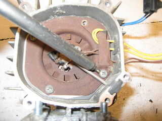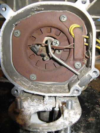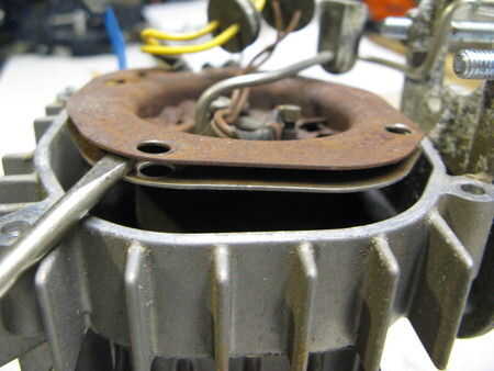 Retire los dos tornillos de fijación del quemador que inserte. Después de quitar todos los tornillos el suplemento quemador está todavía sujeto por el tubo de combustible que pasa a través de un ojal rectangular. Suavemente jale hacia arriba el ojal con un par de alicates de punta. Preste atención a la hornilla Inserte al hacerlo. El suplemento de la hornilla debe levantar junto con la arandela.