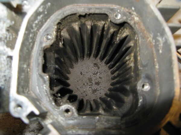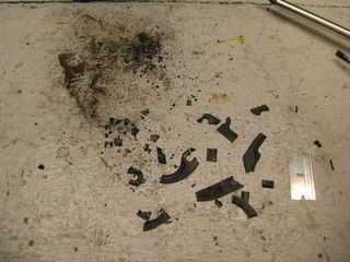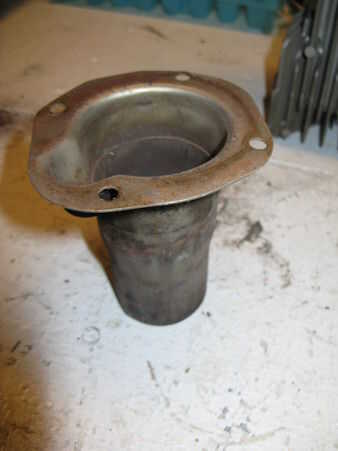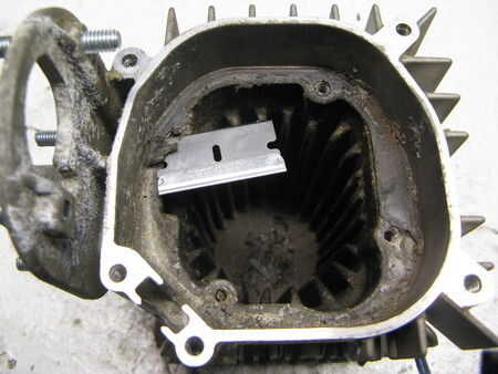 No queda mucho de la Junta que se ajusta entre el intercambiador de calor y el tubo de combustión. Utilice una maquinilla de afeitar para quitar la Junta vieja. Volcar los restos de junta.