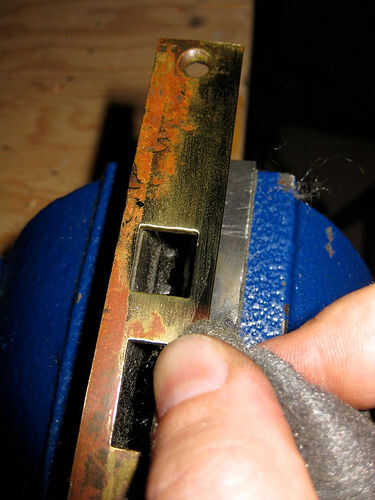Utilice lana de acero 0000 para pulir la cara de la cerradura. No crees que eres inteligente y utilice papel de lija para acometer el trabajo a lo largo. Ser paciente. Recuerde que usted está aquí porque algunos perezoso sod no molesta quitar ot la cerradura antes de pintar. ¡ Mira toda la mugre de allí! No repetir su error. Paciencia!