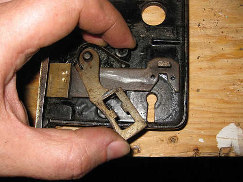 Cambiando de manos en una vieja cerradura llave esqueleto