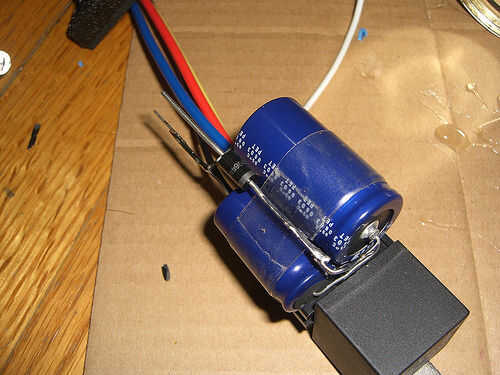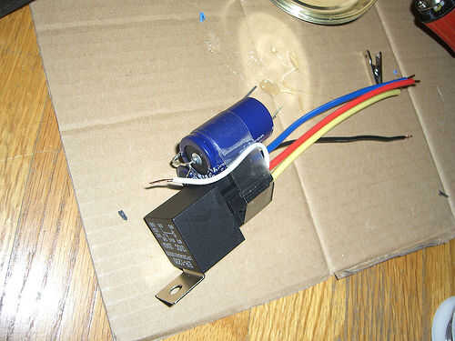 Luego de la soldadura de la bobina del relé "+" al lado "+" del condensador cable.