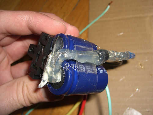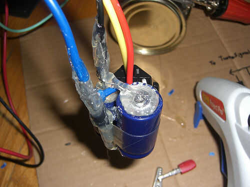 Pegotes de pegamento caliente se aplica a todo el metal expuesto para sellar la humedad y suciedad. Probablemente puede obtener mejores resultados si utilizas algo como Plasti Dip, pero no lo tengo.