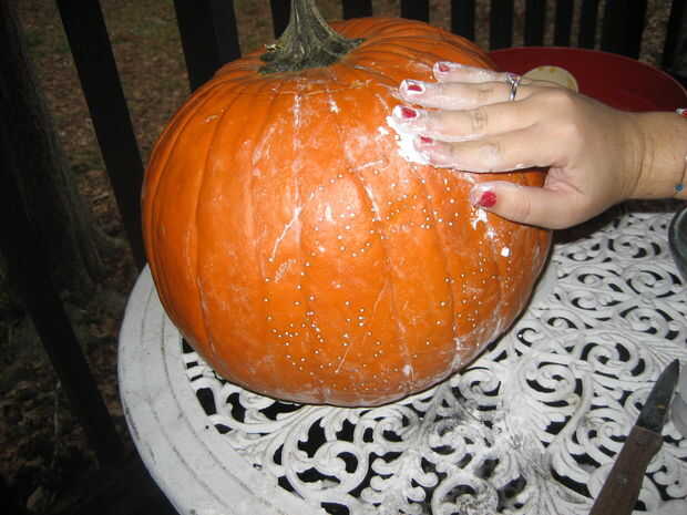 para agregar un poco de textura y creativo para tallar una calabaza. Aquí es una manera creativa de hacerlo, sólo mediante el uso de la calabaza que talla las herramientas, una calabaza (por supuesto), la vela de cera y pintura de aerosol.Paso 1: des