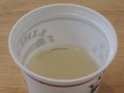 Quite el cuarto y llenar el ácido más allá de la línea. Si usted no tiene suficiente ácido, puede agregar agua y diluirlo, pero no pasar de 50% ácido (puesto que ya se diluye vinagre y jugo). Tenía sólo la mitad el jugo de limón que es necesario por lo que acabamos de añadir más agua hasta que la superficie estaba más allá de la línea de llenado.