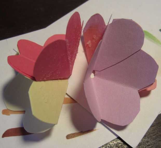 Unte pegamento en la mitad de dos flores dobles y colocarlos juntos, agregue el pegamento a la última flor doble y colocar a uno del lado de los demás. Deje secar juntos durante una hora o dos,