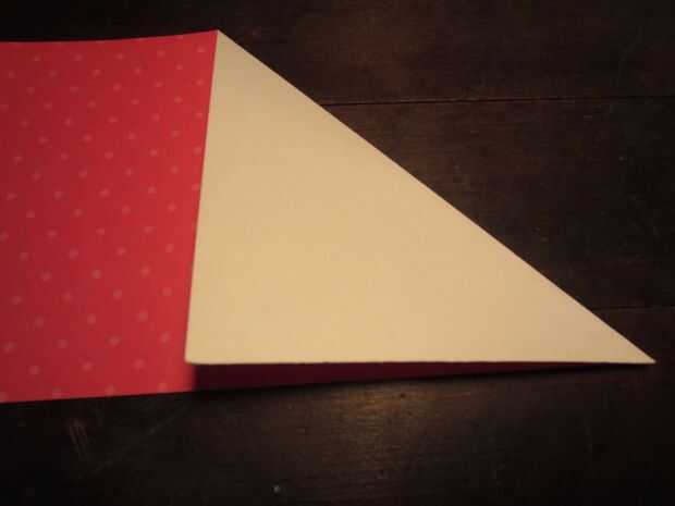Sosteniendo una esquina del papel, bájelo uniformemente hasta el borde haciendo un triángulo. Comprobar que es incluso luego presione con el dedo. Ligeramente arrastre a lo largo de la parte inferior donde está el papel sobrante, desplegarlo y corte a lo largo de la línea. Si la marca es aún visible cuidadosamente borrarlo.