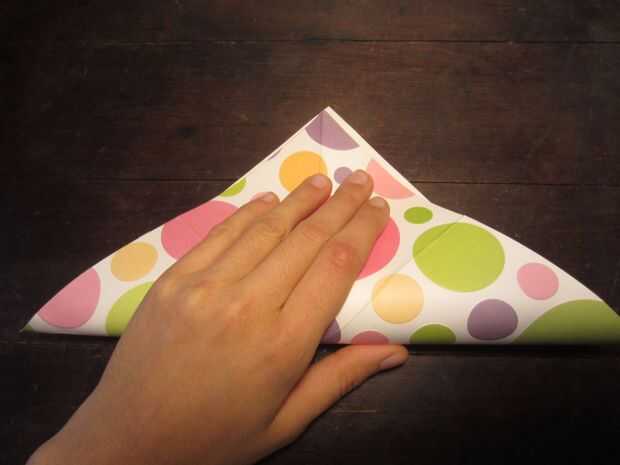 Doblar diagonalmente en medio uniformemente, abrir y doblar en la dirección opuesta.