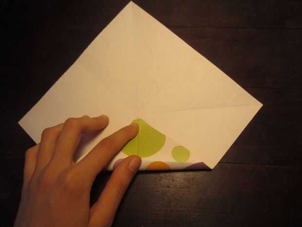 Con su papel de acostado, doblar las esquinas en el centro para hacer un cuadrado más pequeño. Esto le ayudará si usted sigue los pliegues en el papel.