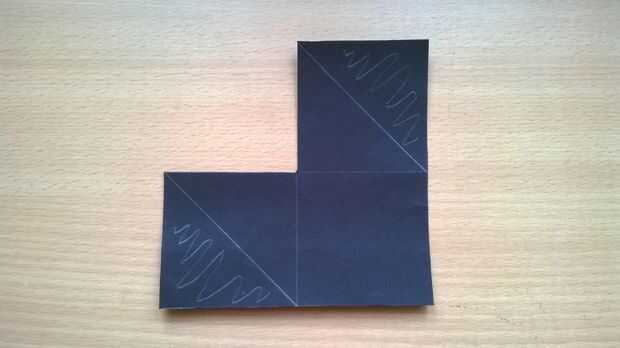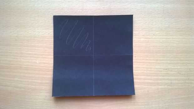 • cortar el papel en un cuadrado de 12 cm x 12 cm. Luego dividirla en 4 partes como se muestra.