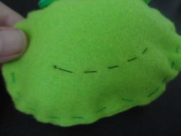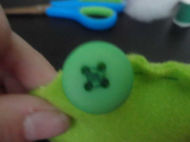 Sew una boca en la parte delantera de la cabeza forma la pieza de fieltro y luego coser dos ojos de botón.