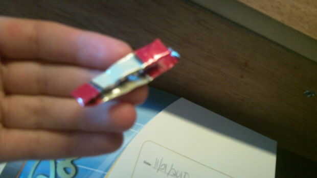 Doble en el mismo medio, pero deja un poco mira hacia fuera. este bit debe ser suficiente para cubrir la otra parte del clip por como un milímetro. ahora doble esta poquito el clip. Asegúrese de que cuando está abierto, puede cerrarla, chasquear como un clip normal. Si no puedes, recortar un poco.