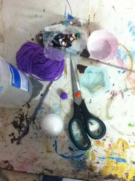 Necesita... â ¢ poliestireno ball (cualquier tamaño que desee) â ¢ lana o bordados hilo (no saben cuánto tendrá tan utiliza una bola de lana o hilo y cortarlo cuando dijo) â ¢ pequeño pernos â ¢ lentejuelas â ¢ pegamento (no un palillo del pegamento) â ¢ Magdalena casos â ¢ las tela poco bola cosa â ¢ pincho â ¢ tijeras