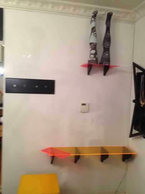 Alquilar un apartamento y me gusta para no dañar las paredes, pero yo realmente quería un pequeño estante para mantener algunos elementos de uso frecuente fuera de mi pequeño escritorio.Este estante está clasificada para aproximadamente 20 libras (~