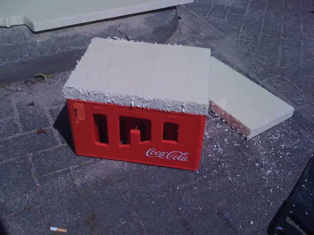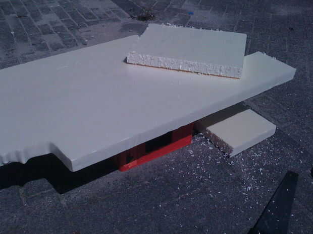 a poner boca abajo de la caja de la espuma de poliestireno y márquelo. Entonces vio al tamaño (la caja es un bienvenida poco apoyo para ello) Vuelta la caja y ponga el pedazo de styro en el cajón.