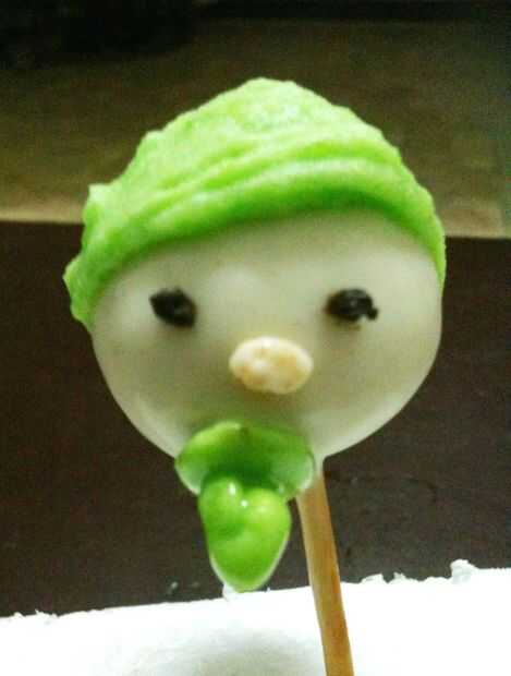 fundir chocolate marrón... echar la selección de diente y marque los ojos en los cake pops.