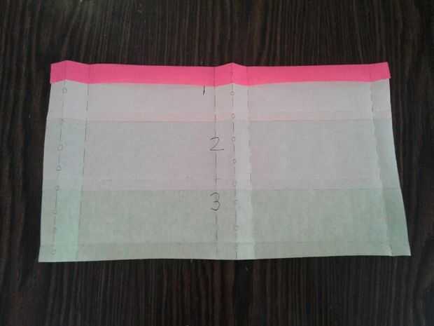 Observar y doblez al centro y al final de la porción como se muestra en línea punteada