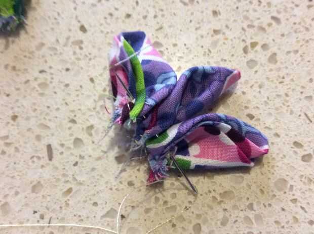 Hola :)Es una cabeza de flor de tela que de cosas además.Paso 1: Materiales necesarios:1. pegamento2. tijeras3. paño (tamaño depende de la pinza de pelo)4. pinza de pelo de5. decorativos granos6. la aguja7. hilo de rosca8. la cintaPaso 2: Coser la do