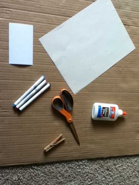 Necesita un pin de ropa, botella de pegamento, tijeras, papel, notecard y rojo, azules y negros plumas. (Palillos del pegamento y Sharpies fino trabajo demasiado)