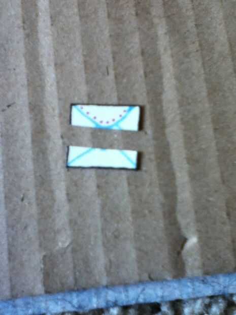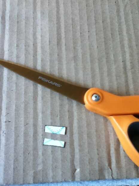Corte la envoltura (pieza de la tarjeta de la nota) en mitad del camino largo.