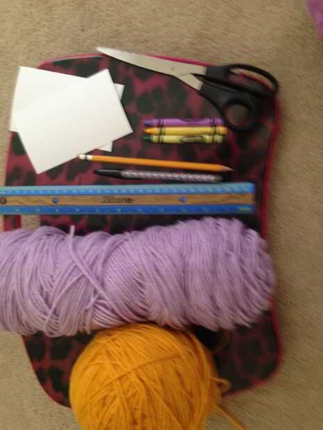 •Dos o tres crayones/marcadores, si vas a hacer flores como un diseño en el frente, recomiendo un crayon/marcador verde y entonces un marcador de crayón del color de su cinta/hilo.