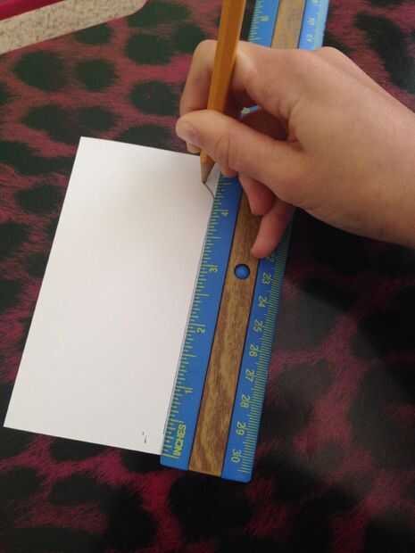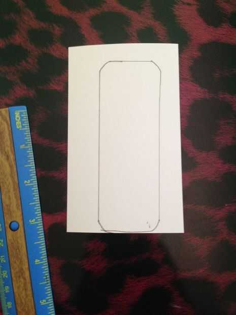 Conseguir una de sus fichas, su pluma/lápiz, regla y tijeras. Comience trazando una forma oval/rectangular en la tarjeta de índice. Desea que esta a 5 pulgadas de largo. Ahora, corte su oval/rectangular. Coloque en la otra tarjeta de índice, traza la forma y corte.