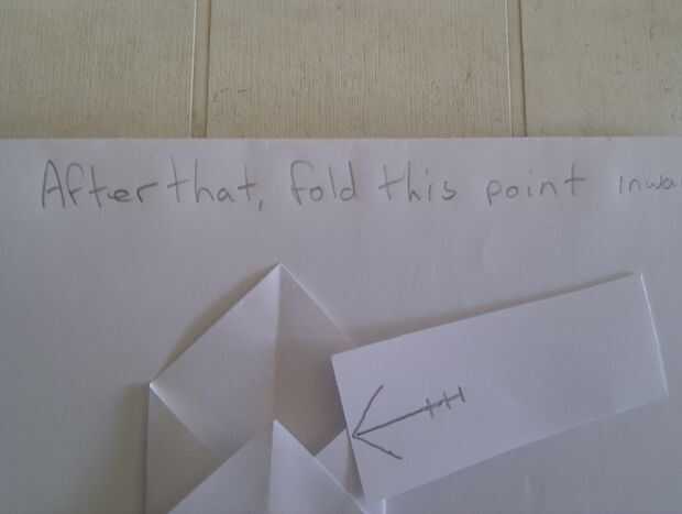 OK, ahora se puede ver la forma de la envolvente, todos tenemos que hacer es tomar el punto de la esquina nos último doblado y abatirla hacia usted hasta que esté al mismo nivel con los lados.
