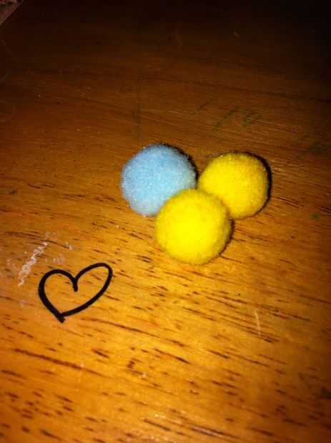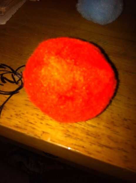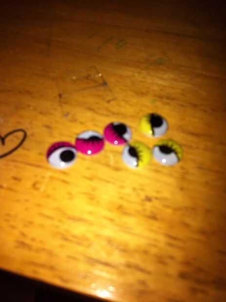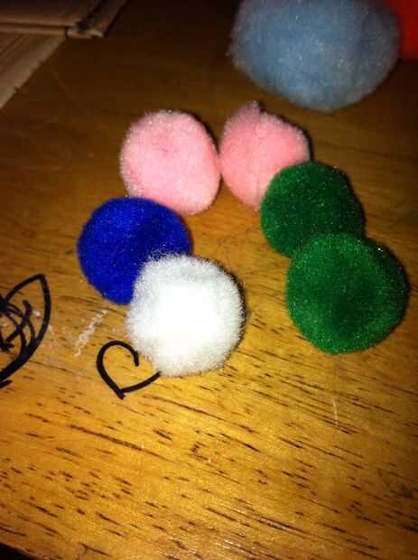 Salir un gran Pom más grande, la de segunda, un pequeño, seis ligeramente más pequeños y tres minúsculos. Y por supuesto, no olvide los ojos saltones! Puede usar tantos como quieras, pero estoy usando seis.