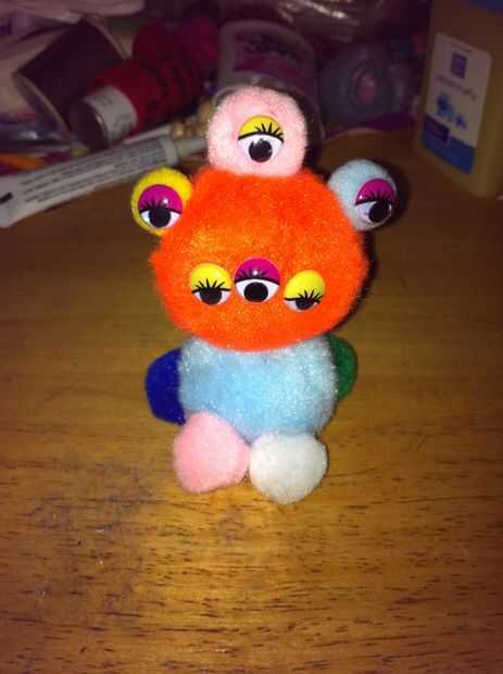 esto es una diversión y una actividad fácil de hacer! ¡ Disfrute haciendo estas lindo y difusa de POM-POM de juguetes!Paso 1: Material Lo que necesita:Hilo.  Cortar el hilo alrededor de una pulgada.  Lo suficiente para hacer paquetes de 5.2 ojos salt