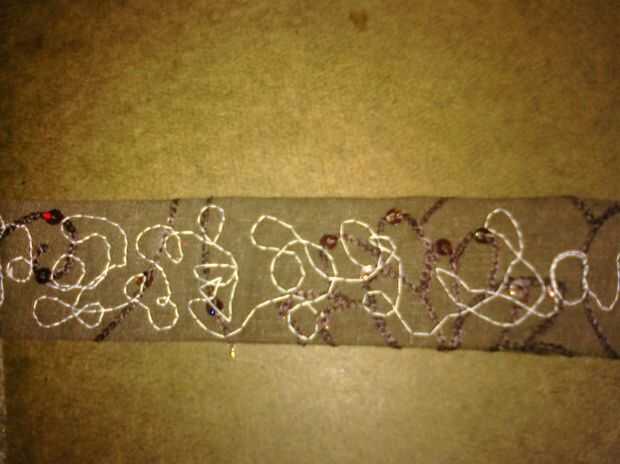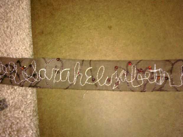 2. Quite el prensatelas de la máquina de puntada de forma libre. La clave de esta técnica es con movimientos suaves y un ritmo constante... Ninguno de los cuales he dominado absolutamente todavía. :) Bucle suavemente hacia adelante y hacia atrás mientras se mueve hacia abajo de la correa. Hay no automática asiendo con esto, así que asegúrese de mantener el control de su tela. Usted puede hacer cosas de la diversión! Como intentar escribir su nombre en cursiva...:) si quieres hacer cosas como cruzar la T o el punto de que o haga frescos formas apenas detrás de la pista en la puntada, levantar el pie y comenzar en su nueva ubicación, asegurándose de que el nudo y cortar donde sea necesario.