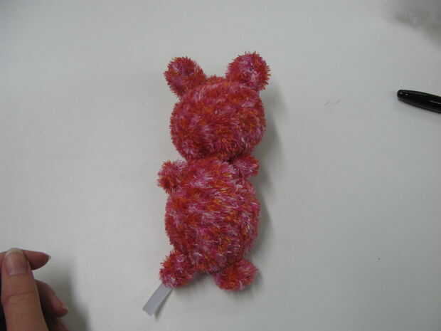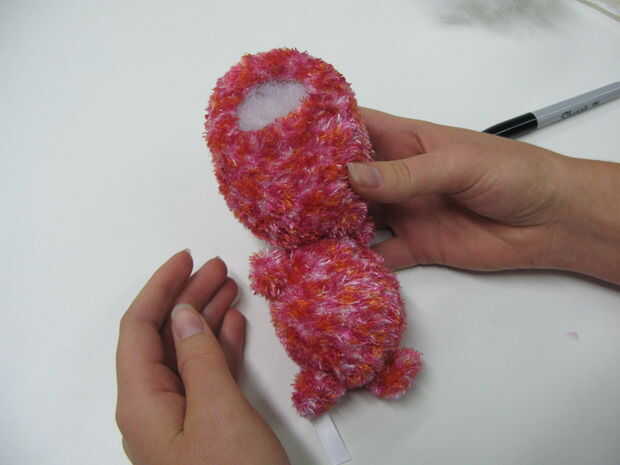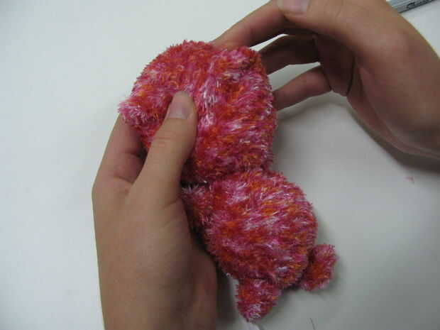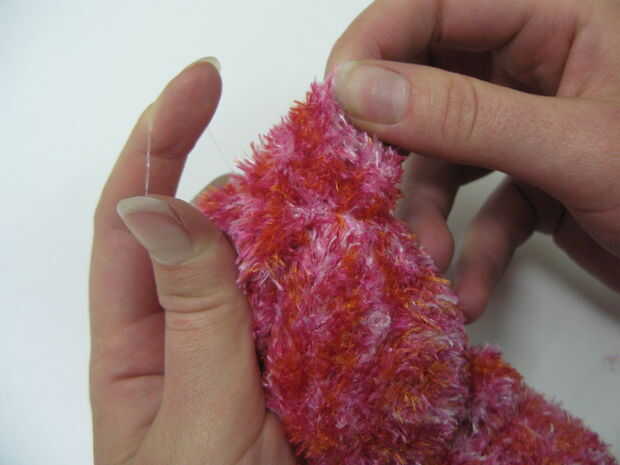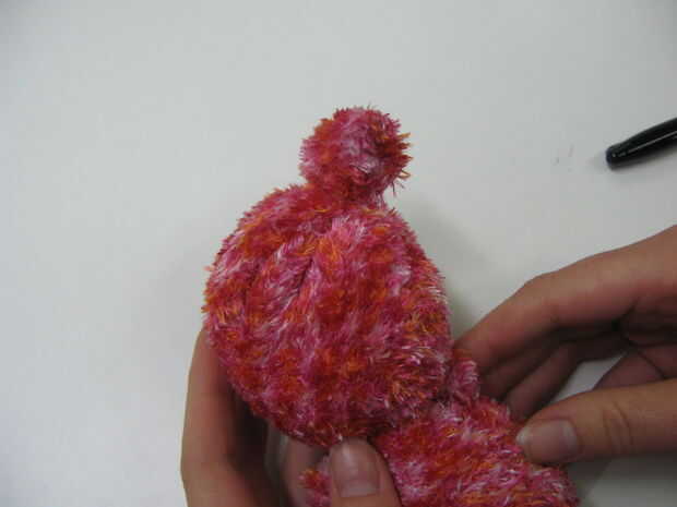 El siguiente es añadir las orejas. Doblar el borde superior del calcetín para ocultar el relleno (Foto 2).