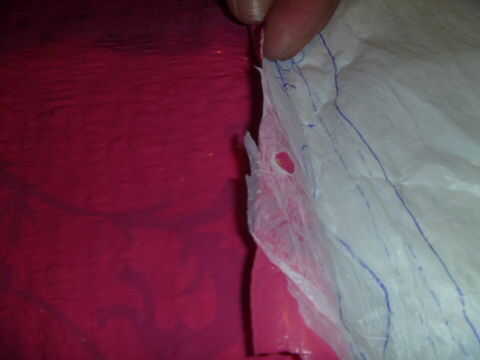 Recortar su contorno en las bolsas de plástico blanco. Luego decidir qué lado le gustaría ser su principal para los bolsos de blanco y la franja (color rosa). Coincidan los dos extremos y se funden los, para un mejor ejemplo, ver imágenes.