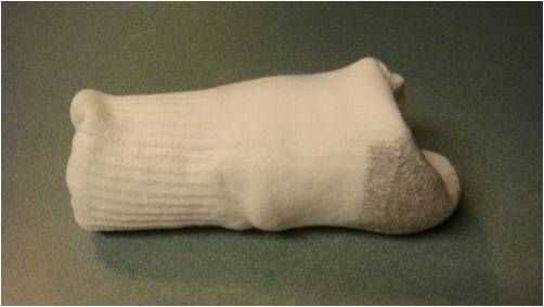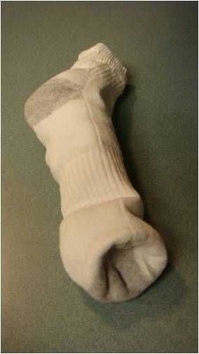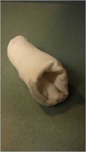 Introducir la punta de los calcetines en la botella de agua. Repetir este proceso en el otro extremo del calcetín.