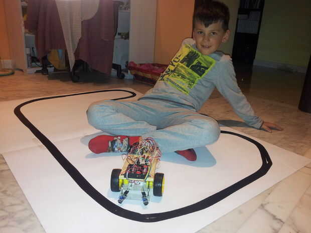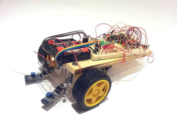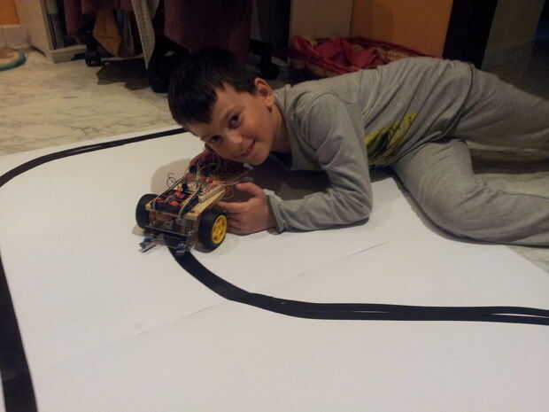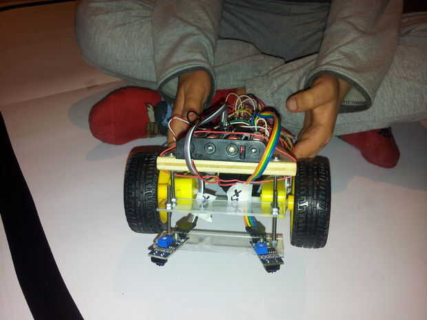 El propósito de la línea que sigue el robot:Sigue la línea de dos maneras diferentes.Seguir líneas blancas sobre un fondo negro para seguir una línea negra sobre un fondo blanco información sobre robots:Sensores infrarrojos gracias a una línea negra