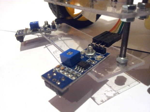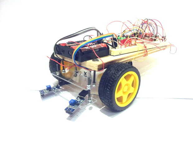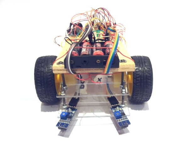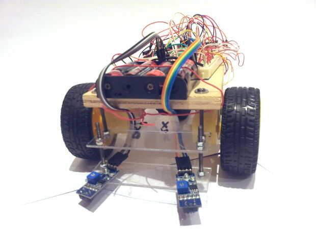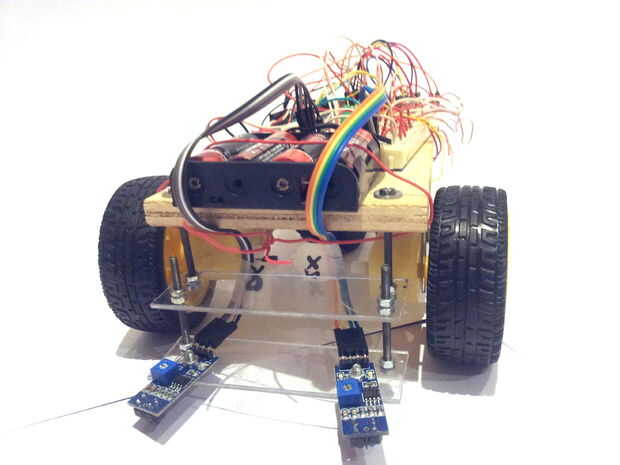 El propósito de la línea que sigue el robot:Sigue la línea de dos maneras diferentes.Seguir líneas blancas sobre un fondo negro para seguir una línea negra sobre un fondo blanco información sobre robots:Sensores infrarrojos gracias a una línea negra