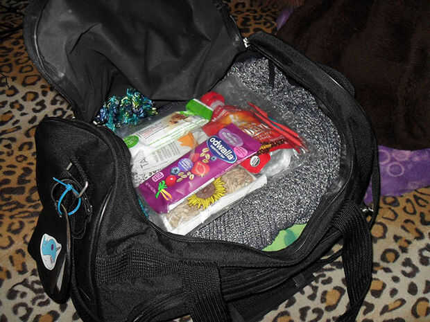 Meta sus golosinas en el repuesto rincones y grietas de su transporte en o embalamos todos juntos en un ziploc para no tener que cavar alrededor de más adelante.