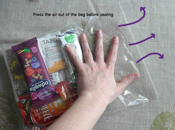 Su objetivo es empacar un bolso relativamente plano. Esto debería ser fácil ya que la mayoría de los alimentos mencionados aquí vienen como tal.