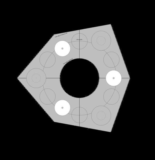 Aquí están algunos detalles más. En primer lugar, pongo las dimensiones del espejo en Plop gráfica para calcular la óptima colocación de las almohadillas de pegamento de silicona. Normalmente para un espejo de este tamaño, uno utilizaría tres pastillas. Sin embargo, porque estaba usando un espejo dañado, yo quería más alivio de tensión para el vidrio, y lo usé seis. Básicamente, las almohadillas que todos consiguen igualmente espacian alrededor de un círculo, y Plop calcula cuánto del centro del espejo que pasa el círculo.