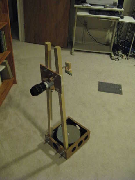 El puntal no va directamente hacia arriba, perpendicular a la parte inferior de la placa base. Es al ras de un lado de la caja del espejo y en ángulo hacia adentro de la otra pared. La primera foto muestra el diseño original, con dos puntales y no corta a la medida. También estoy adjuntando un dibujo de Inkscape, que he modificado para que el Instructable estar más cerca la versión final del diseño. El dibujo no cabe en una página de 8,5 x 11, por lo que imprimí en dos secciones de tamaño completa, que contiene el área de caja de espejo y que contiene el área de la Junta de enfoque (paso 8) y utiliza cada sección como plantilla de perforación, corte, ángulo y colocación. (Porque inicialmente estaba usando dos puntales, era realmente un poco más fácil conseguir la colocación simétrica y agradable).