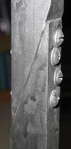Al final de la elaboración de telescopio y esto es definitivamente opcional, que cortar la costilla por la mitad, con una diagonal larga corte e hizo las dos mitades montar con cuatro tornillos de máquina. Las tuercas de los tornillos están permanentemente JB soldado con autógena en el lugar. Desde el puntal es aproximadamente treinta pulgadas de largo, cortar por la mitad hacen posible caber en una maleta más pequeña y disminuye la probabilidad de su rotura en el transporte. Lo que puedo decir, cuando se ensamblan las dos mitades, es casi tan sólida como si nunca se corte.