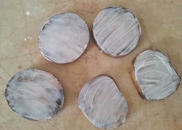 Ahora primero revestido con barniz y descubrió las rebanadas mantenidas bebiéndolo! Así cubrió con 2 gruesas capas de pegamento blanco.