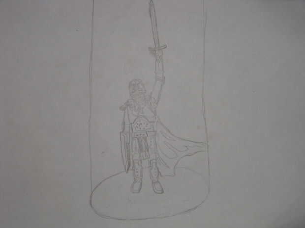 Ok, haz la imagen que usted dibujó. Sólo utilicé lápiz de mina. No sombra nada, sólo a hacer cosas más complicadas. Al analizarlo en su computadora si es posible. Mi escáner está roto, así que tuve que usar una cámara digital que no funciona muy bien. Como se puede ver es muy difícil de ver. Llamó a una persona de caballero cruzado, muy rápidamente. Continuar al siguiente paso!