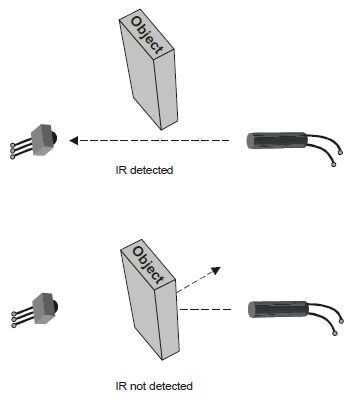 Un sensor infrarrojo es un sensor que reacciona a los rayos infrarrojos (IR) de proyección de luz. Un rayo infrarrojo de la luz surge de un terminal conocido como emisor y es recibido por otro terminal conocido como receptor. El emisor y el receptor pueden estar en el mismo lado o del lado opuesto. La detección se puede detectar un obstáculo que rompe la proyección implica la presencia de un objeto externo, o sentido de la proyección en el receptor que implica movimiento de un objeto que debía para romper el haz de luz, o ambos.
