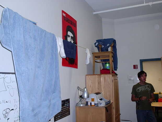 Hacer uso de dormitorio estándar habitación muebles y electrodomésticos tales como armarios, estanterías, del libro loft camas y hasta refrigeradores. Nada con cierta altura a él. Otra cosa que puede pasar por alto son las cortinas de ventana. Mi primera línea de ropa fue unida a la cortina de la ventana y corrió a lo largo a lo largo de mi cuarto donde fue atado a una silla de madera en lo alto de mi armario. ¿Incompletos? Sí. ¿Eficaz? Es sorprendente.