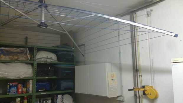 Mi esposa tuvo un nuevo problema para mí. En el sótano tenemos nuestra lavadora pero no tenía suficiente espacio para secar nuestra ropa. Mi solución simplemente pone la ropa en el techo...