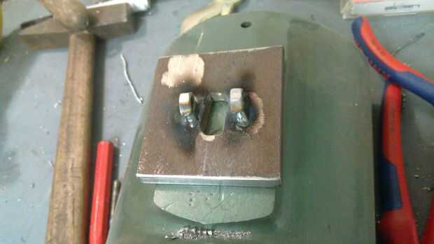 La placa del adaptador conectará el cable de acero con la línea de ropa. Por lo tanto, simplemente he soldado algunos frutos secos sobre una placa de acero. A través de las tuercas he añadido una barra roscada.