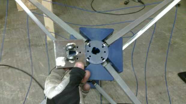 Se realiza el montaje de la placa adaptadora con remaches. Por lo tanto tuve que taladrar los agujeros en la línea rotativa.