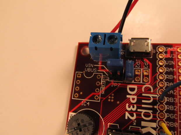 Por último, usted puede atornillar añadir la batería atornillar la batería lleva a los terminales de tornillo. Asegúrese de que conecte los cables a los terminales correctos, tal como se indica en la tabla, de lo contrario puede dañar la placa. Cuadro 5 muestra la posición de que sus puentes deben utilizar el poder de estos terminales.