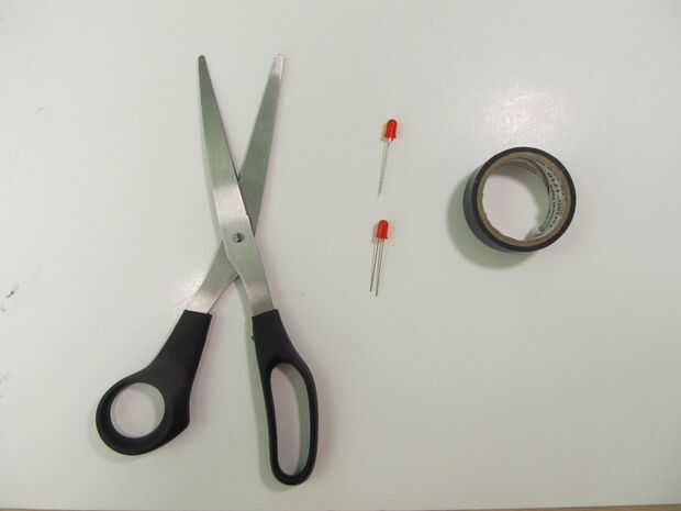 Este primer paso utiliza sus principal LEDs (rojos, en mi caso), alguna cinta aislante y las tijeras.