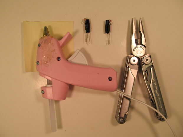 Este paso utiliza sus sensores recién hechos, su DP32, las pinzas y el soldador. La pistola de pegamento caliente es opcional, pero ayuda.